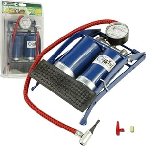Product Description : This incredible pump is great for a myriad of applications from inflating pool toys to bicycle tires and more.Pressure gauge is marked 0-100 psi and 0-7 bar so youll be able to inflate precisely. This double barrel foot pump is installed with a high air pressure cylinder and piston resulting in light and easy operation. Features include:Double cylinders pump twice as much airPressure gauge marked in psi and barFloat inflator and presta valve adapterDimensions: 8.75 x 5.5 x 2.375 inchesIncludes retail packagingThis products takes approximately 2 days to ship. The products that take longer are normally due to being custom-made products.